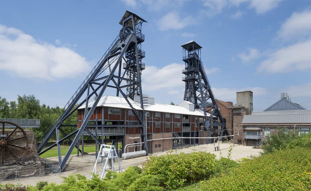 Bois du Cazier، مارسينال – هياكل رأس البئر التراثية في موقع المناجم البلجيكي (صورة حديثة)