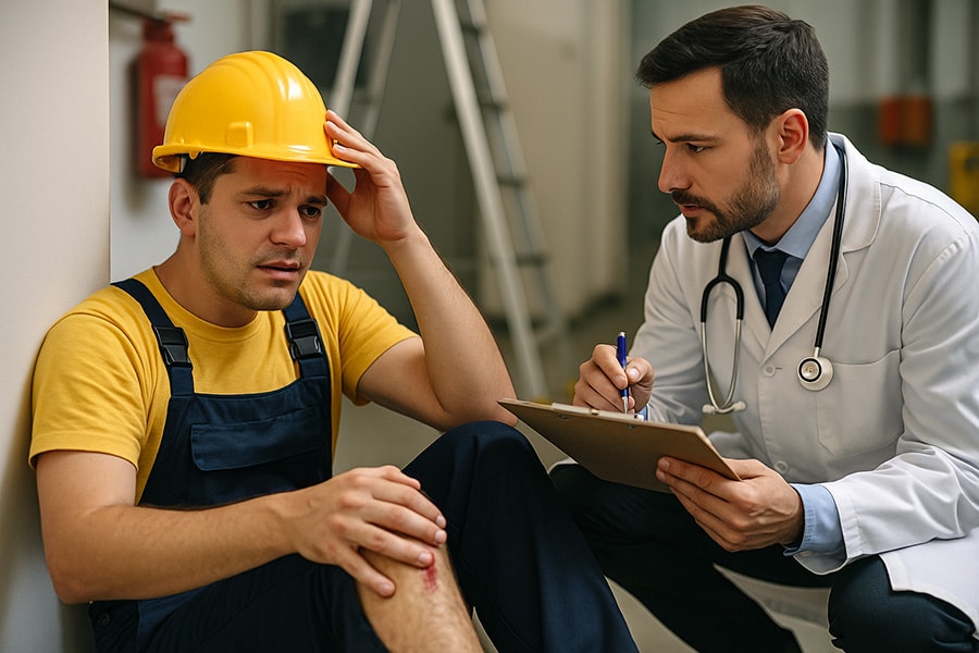السلامة تأتي أولًا. اطلب المساعدة الطبية فورًا، سواء من الطبيب أو المستشفى. بعد الفحص، احصل على شهادة طبية أولية توضّح طبيعة الإصابة وتاريخها. احتفظ بكل الوثائق الطبية والفواتير لأنها ستكون ضرورية في ملف التعويض لاحقًا.