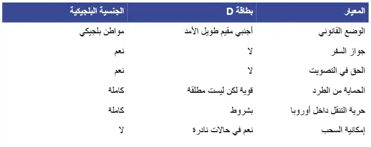 الفرق الجوهري بين بطاقة D والجنسية البلجيكية #